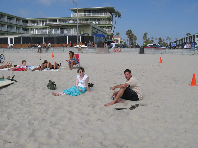 We reluctantly bid Rani adieu the next morning to allow her to return to her packing and quandary as to whether or not she was truly going to move east. Back to Chris’s we went – we had the route between his and her places memorized by now. Chris was eager to hang out and show us around his haunts. We spent some time at the white-sand beaches, taking in the ocean and the press of humanity soaking up the summer sun and breeze. We walked around town and ordered a pizza for dinner. There were plans to catch a movie but it never really panned out so we said our goodbyes and headed out. As our next stop was Fallbrook – near San Diego, we didn’t need to travel too far for a hotel that night, but we definitely wanted to be far enough outside of the city for cheaper prices. Fortunately we found a well-priced place before dropping from exhaustion that evening! |