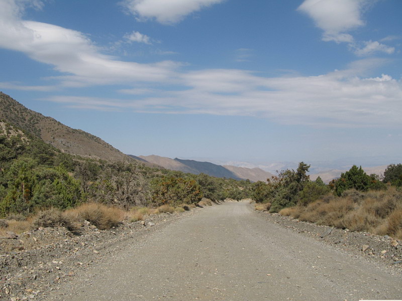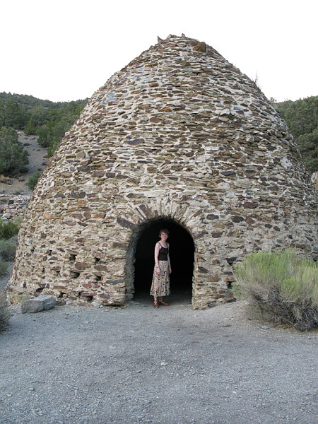 Rick was rather neutral on the whole “which way do we go?” question, so I made the decision: we went north. We chose to take Rt. 395 through the Mojave Desert – some of the most desolate country you will ever see. Ironically there were plenty of Joshua trees along the way, so we didn’t feel we were missing our botanically – I do still want to get to the Park at some point though – I do hear it’s fabulous! Just outside of Death Valley is a Naval Air base and the jets were out doing maneuveres as we were driving through the area. At one point we saw one draw level with the road ahead of us and I knew what he was doing. I grinned as the jet raced down the arrow straight road right towards us, buzzing the car as it flew over us. It was great! We arrived at Death Valley via the south-west entrance. Apparently not too many people come in this way as there’s no booth or anything to monitor one going into the park (we hadn’t seen any other cars for a couple hours) – just a sign telling you that you were now in Death Valley. We drove right in. The roads left much to be desired. In the north-east, an unmaintained road falls into horrible disrepair in just a couple of years due to heavy spring rains, snow and frost-heave. Out in the desert where the only eroding factor is the wind, it’s hard to imagine how long these roads have been there without any upkeep! Strangely, this part of Death Valley was not just a continuation of the desolate desert we had just left behind. We drove past breath-taking rock formations and even came upon a delightful picnic area that was draped in pink desert roses. It was quite a lovely sight! We stopped at an abandoned ranger station that had the various camp grounds posted – all the ones in our area were free to camp at; sounded good to us. We stopped at the first one. Its amenities included water spigots at every camp site. There was one other couple at this site and though we were fine with sharing, Rick and I were interested in moving on to one further down the road to see what there was to be seen. What came next amazed us. We were driving along (on increasingly horrible dirt roads), when suddenly we came upon these massive brick dome structures. Turns out these were charcoal kilns built about 100 years ago when there was active mining at Death Valley. Local wood was gathered (there are trees) and burned for about two weeks in these domes. The resulting charcoal was then carted by mule train to the mining areas and used to smelt ore. The kilns now stand empty. What really intrigued me though was that they were just about the same size and shape of Spider Kius homes. I was in seventh heaven, taking in a real life example of something I before could only just imagine. It was really fun! After I’d had my fill of the kilns and Rick had taken all the pictures he could, we continued on to our chosen campground and found it completely devoid of people. This was great! We had our pick of sites. As we were setting up the tent we decided to leave the rain hood off in the hopes of seeing stars through the ceiling mesh. We were in Death Valley afterall – not exactly known for its rainy weather. Of course, we were also camping at 8,000 to 9,000 feet above sea level. Wouldn’t you know – it was chilly and it did indeed rain all night long. Not a heavy rain, just a steady, insistent heavy drizzle that had everything soaked by with time we made a run for the car at 4:30 in the morning – where we spent the rest of the night. Oddly we weren’t put out by the moist conditions – it made for a fun adventure! |