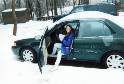 One afternoon Gwen and I went to Crossgates Mall in Albany to see the movie I am Sam. After the movie we decided to look for some car dealers so Gwen could get a car. We stopped at a Ford dealership on the way back. There Gwen test-drove one car and we looked at a few more. The dealer tried to get us to close a deal on one of the cars, but Gwen wanted to go to a few other places first to see what else was there before making her final decision.