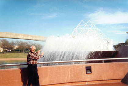 My dad by a very kewl water fountain at EPCOT