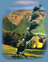 Lighting Effects: The photograph on the left is the original. The others were drawn by me and show different times of the day using various lighting effects. This was created in Fractal Design Painter. |